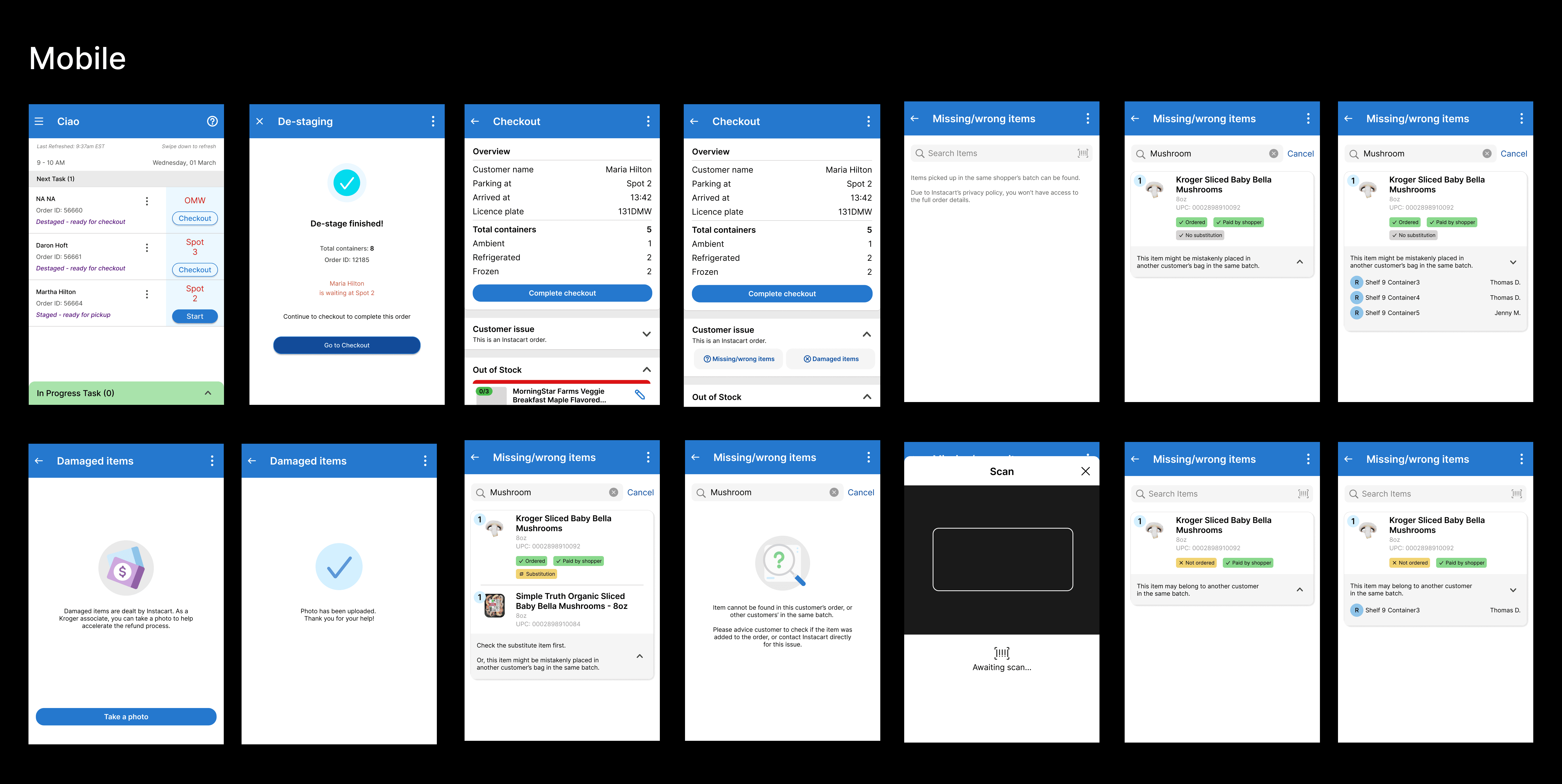 How might we enable Kroger pickup team to help customer with Instacart order issues on the spot, while keeping it business-feasible?